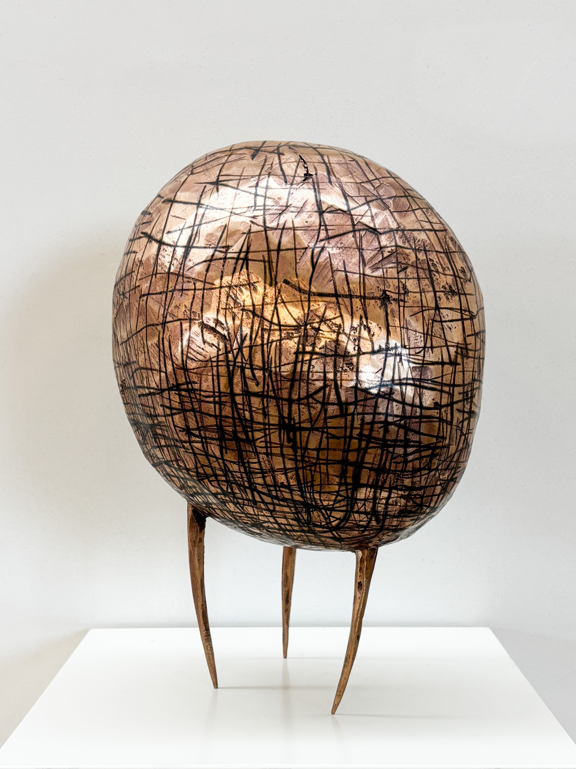Sein Interesse gilt minimalistischen Künstlern und Kunstwerken, wobei er sich in seinen unterschiedlich bearbeiteten Kopfformen (teilweise ein- und zerschnitten, mit grober oder feiner Struktur überzogen, mit Nägeln beschlagen) einem Thema zuwendet, das berührt. Gerade in der konzentrierten Bearbeitung der Kopfformen, gleichmütig gegenüber ihrer Konnotation, zieht der Künstler die Bedeutungsschwere des Objektes hin zu einer haptisch ansprechenden, in frischer Anonymität sich wiederholenden abstrakten Form.